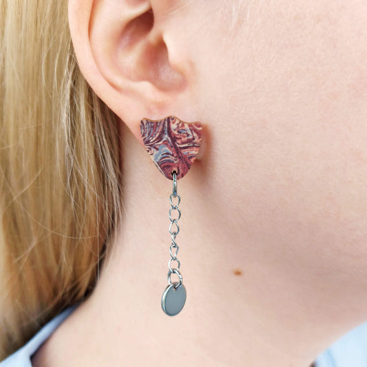 Syvyyksissä -nappikorvakorut kimallus punertava