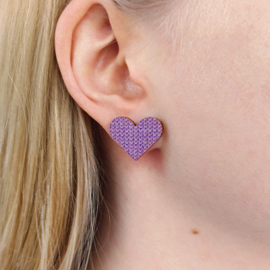 Huoku sydän -nappikorvakorut lila