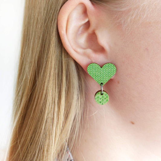 Huokuhuuto sydän -nappikorvakorut vihreä